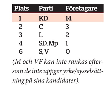 KD har flest kvinnor, lägst genomsnittsålder och flest företagare på sin valsedel i Köping