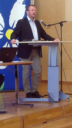 [Plats 6 till landsting/region!]- Nomineringskommitténs ordförande Andreas Sturesson, Jönköping, i talarstolen. (Foto: Håkan Johansson)