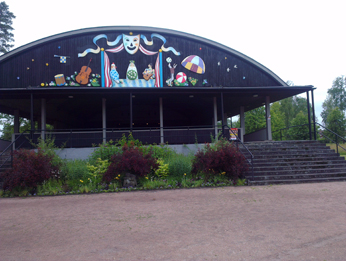 - Det nyrenoverade konstverket på plats på teatern i Folkets Park igen. Mycket snyggt! (Foto: Håkan Johansson)