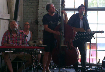 Den började med våffelfika och mingel med goda vänner. Så gick de upp på den lilla scenen i hörnet – Peter Hallström, Dan Nyhlén, Sven Lindvall och Wille Ahnberg. Några av Sveriges bästa låtskrivare och musiker på samma scen! Det var inte bara det att det var en ovanligt varm dag. Det var inte det att bruket hade startat igen. Den värmen som slog emot oss från scen när de sjöng sina finstämda, livsnära och ömsinta sånger var total. Detta var svensk rockpoesi när den är som bäst. Tack för inbjudan Karin – oväntat vinner i längden! 😀