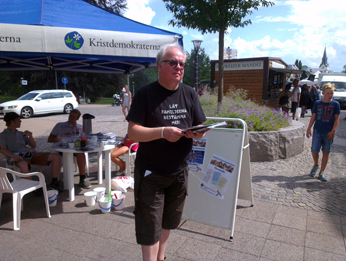 - Här står jag och delar ut Kristdemokraternas sommartidning Familjens röst. (Foto: Camilla Rinaldo Miller)