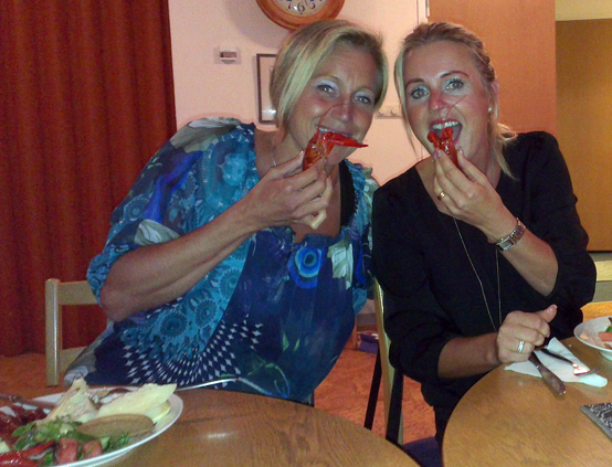 [Kickoff med utbildning och kräftor]- Camilla Rinaldo Miller och AnnSofie Björhag gillade kräftorna. (Foto: Håkan Johansson)