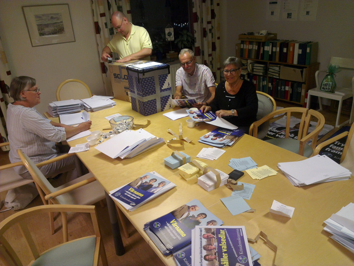 Vi har hållit på att jobba med ett utskick till alla hushåll i kommunen ett tag nu. Foldrarna är färdiga (de skrev jag utkastet till – KDJK Valfolder A4 Värnamo 140804_05). Kuverten är färdiga (de gjorde jag). Valsedlarna är färdiga. Plötsligt visar det sig att tryckeriet inte hinner bli färdiga med de försändelser som ska skickas med lantbrevbärare.