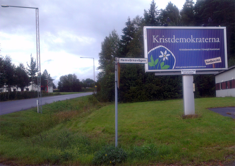 På väg från jobbet i Gnosjö till valstugeinvigningen i Värnamo började mitt kristdemokratiska kampanjarbetarhjärta plötsligt bulta fortare. När man åker genom Gnosjö är det omöjligt att missa Kristdemokraterna på den stora reklamskylten. Som kampanjarbetare är det lätt att känna sig stolt då.