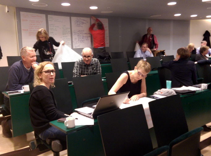 - Andra delen av EU-utbildningen och vi skriver redan projektansökningar! Jag samarbetade med Jörgen Skärin (MP), Helena Ruderfors (C), Ibrahim Candemir (KD) och Eva Petersson (FP). (Foto: Håkan Johansson)