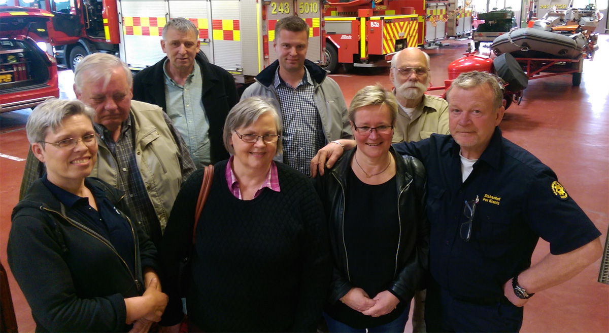 Mot slutet fick vi en rundvandring på räddningsstationen i Värnamo. Det är en modern anläggning med mycket utrustning som kontinuerligt måste hållas i gott skick. Stången som brandmännen använder vid utryckning lockade några av ledamöterna och ni skulle sett med vilket dödsförakt jag kastade mig utför den… 😉