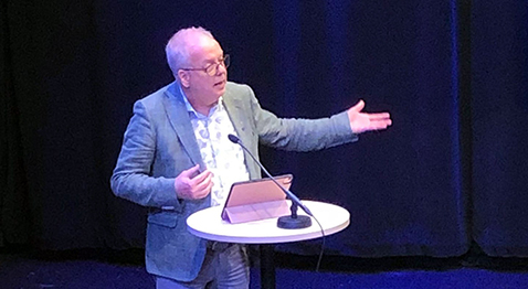 - Håkan Johansson (KD) debuterar i Regionfullmäktiges talarstol. (Foto: Raymond Pettersson och Mia Frisk)