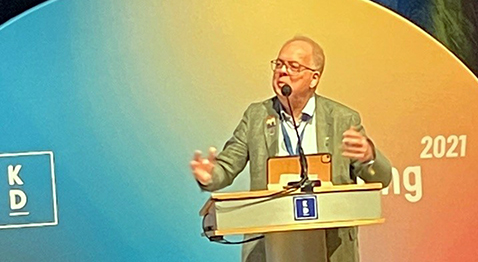https://fb.watch/9mekxv0yYe/- Håkan Johansson (KD), Värnamo, försvarar sin motion, Ett moderniserat statsskick, på rikstinget i Norrköping. (Foto: Stina Sinclair)
