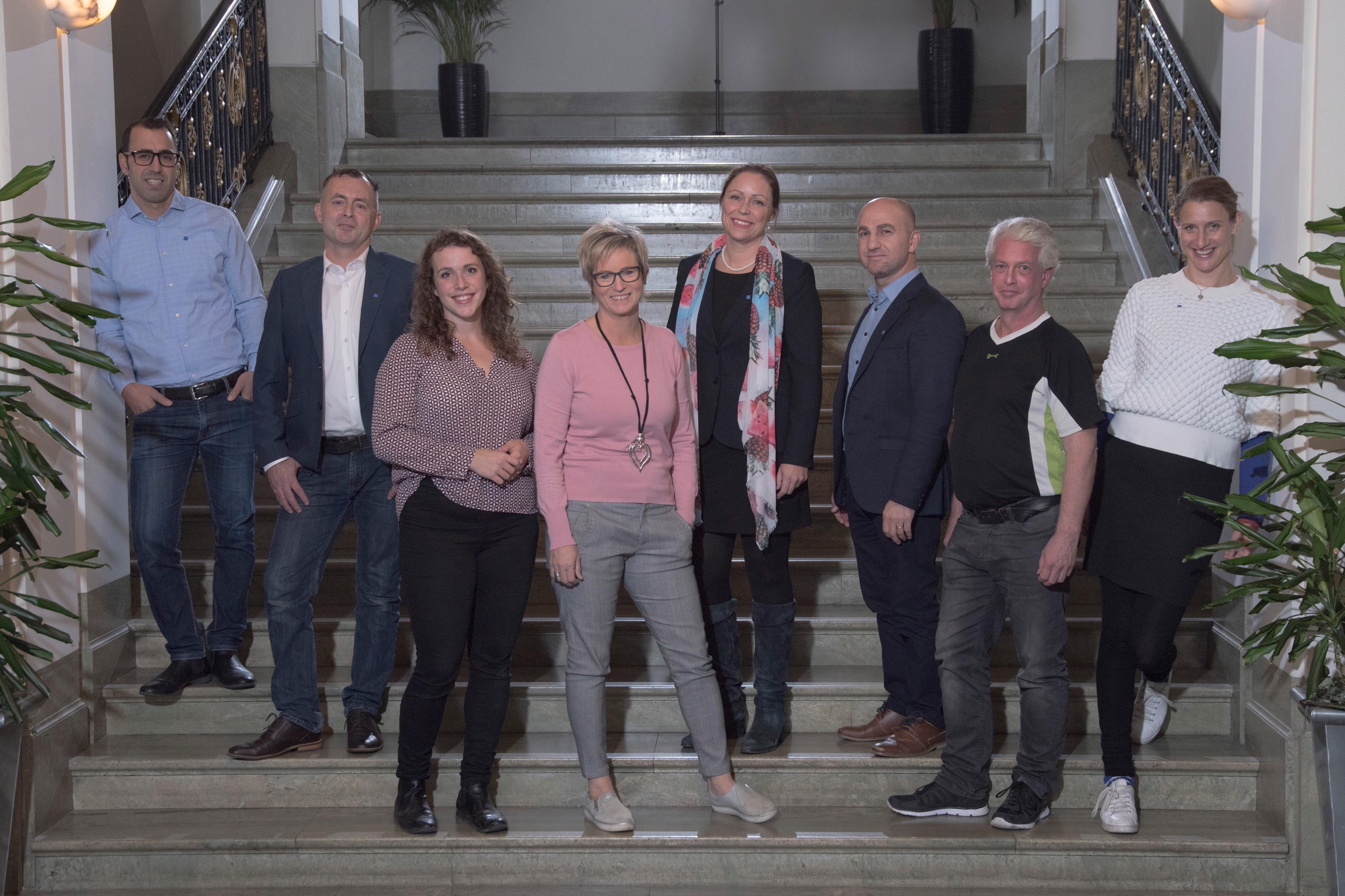 Från vänster: Tomas Tekmen, Mattias Hubner, Elvira Wibeck, Eva-Britt Sjöberg, Eva Moberg, Isa Isa, Niclas Clarén och Jenny Lisiderius