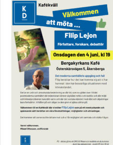Medlemsmöte KD Österåker den 6 JUNI med FILIP LEJON