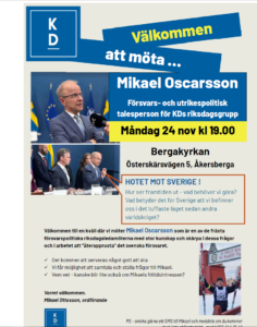Medlemsmöte KD Österåker den 24 NOVEMBER med MIKAEL OSCARSSON