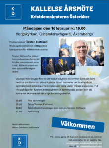 Måndagen den 16 februari Kl 19:00 kallas ni till kristdemokraternas årsmöte