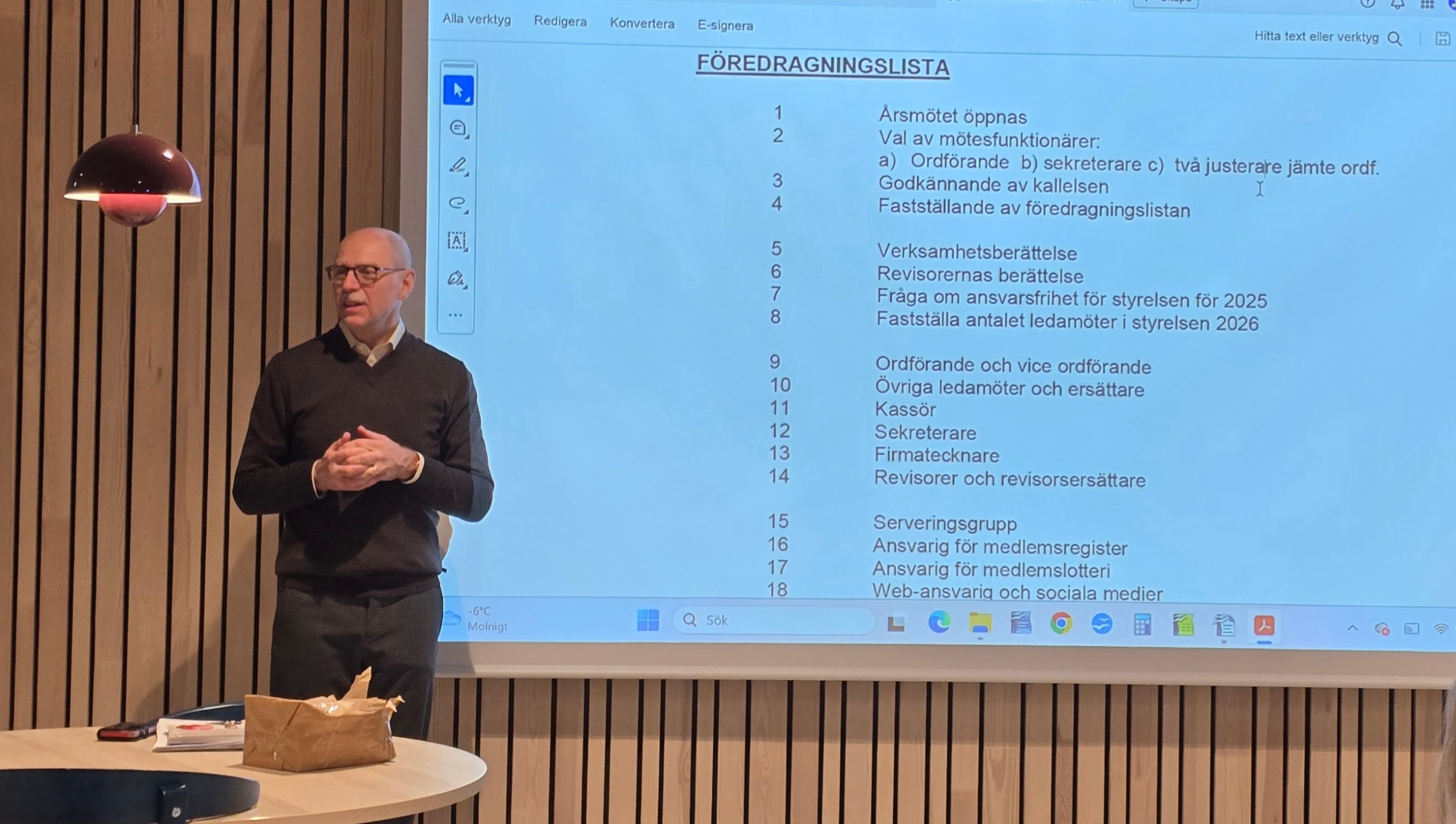 Under kvällen serverades kaffe och goda smörgåsar till de 25 närvarande. Och som avslutning hölls korta förhandlingar där Mats Antonsson omvaldes som ordförande i lokalavdelningen och Jimmy Rydé omvaldes som vice ordförande.
