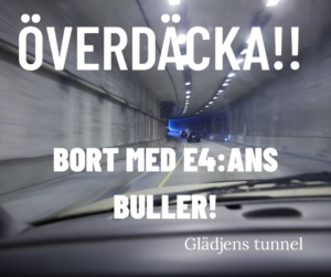 Kommunen, med dess läge utmed motorvägen, närheten till Arlanda flygplats och järnvägen, har att arbeta extra mycket med bullerfrågan. Vi måste förstå att buller är en hälsofråga av stort format. Resultatet av ett ständigt bullerbrus kan leda till sjukdom och social störning. En lösning som vi kristdemokrater vill se är att ett arbete påbörjas med att se över möjligheten att även i Upplands Väsby kunna bygga in delar av E4:an i en tunnel. Att göra detta på den sträcka som ligger närmast de mest centrala delarna av kommunen, från Glädjens trafikplats fram till Hammarby Apotek, skulle göra stor skillnad såväl ur bullersynpunkt som i och med att det skulle kunna ge stora rekreationsytor. Vilundaparken skulle kunna bli ett riktigt idrottsnav! Vi vill se Glädjens Tunnel!