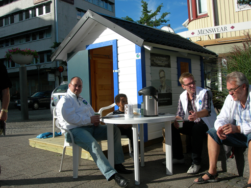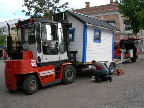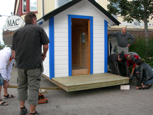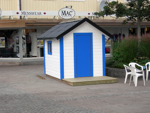 - 5. Så där ja. Nu är Kristdemokraternas valstuga på plats – en riktigt fin liten lekstuga för familjepartiet framför andra. (Foto: Håkan Johansson)