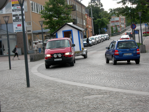 - 1. Här kommer Kristdemokraternas valstuga ned för viadukten. (Foto: Håkan Johansson)