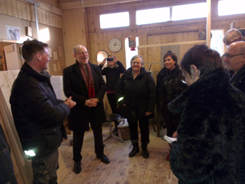 Martin Alvsveden, VD för Gunnars såg, tog gärna tillfället i akt och visade statsrådet runt på företaget. Entusiastiskt berättade han om företagsidén – att bygga skräddarsydda, gärna lite exklusiva, stugor med höga krav på kvalitet och miljö.