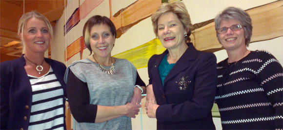 - Barn- och äldreminister Maria Larsson (KD), Gnosjö, tillsammans med några av Kristdemokraternas toppkandidater i Kommunfullmäktigevalet 2014: AnnSofie Björhag, Värnamo, Camilla Rinaldo Miller, Bredaryd och Monica Johnsson, Rydaholm. (Foto: Håkan Johansson)
