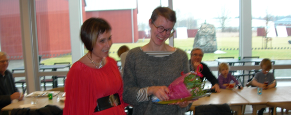 - Prisutdelaren Camilla Rinaldo Miller (KD) och prismottagaren Elna Svenle (Vandalorum) – båda lika glada. (Foto: Håkan Johansson)