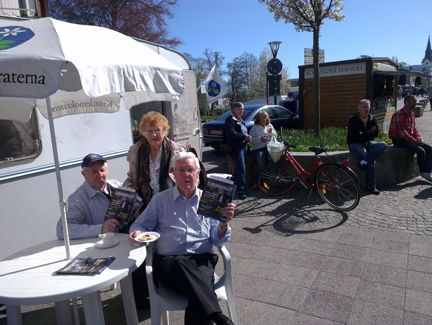 Man vet att det är vår när Kristdemokraternas seniorförbund ställer upp sin våffelvagn mitt i Värnamo centrum. I strålande sol passade de på att smygstarta EU-valrörelsen och bjuda på våfflor i marknadsvimlet. Det var många av de som stannade som gärna vill se Lars Adaktusson ta plats i Europaparlamentet i Bryssel.