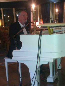 - Roland Utbult rockade loss på hotellets vita flygel i sann Liberaceanda. (Foto: Håkan Johansson)