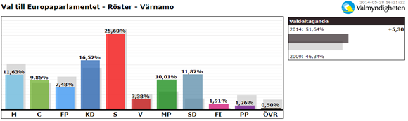 - Slutligt valresultat för Värnamo kommun i valet till Europaparlamentet 2014.