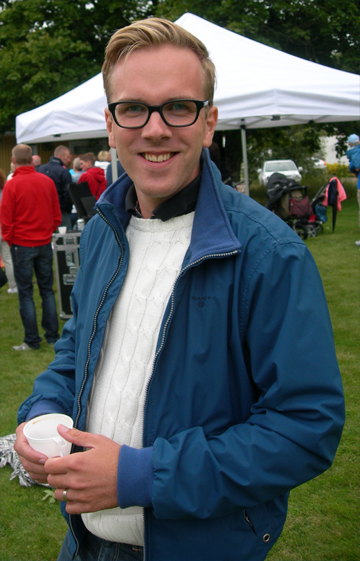 - Andreas Carlson, riksdagsledamot och ordförande för Kristdemokraternas jönköpingsdistrikt hade inte många ensamma stunder under garden partyt. (Foto: Håkan Johansson)