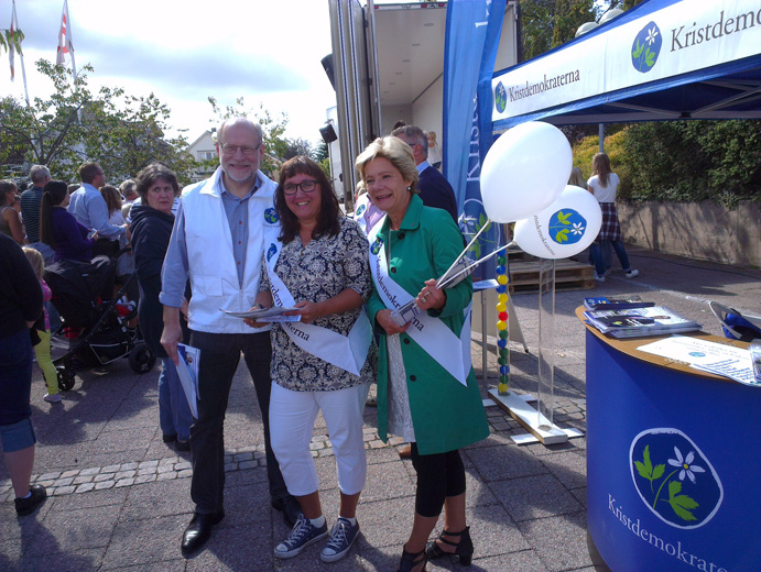- Toppkandidaterna Stefan Attefall, Mia Frisk och Maria Larsson presenterade Kristdemokraternas regionala valmanifest på Bredaryds marknad. (Foto: Håkan Johansson)