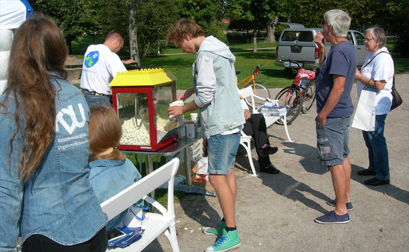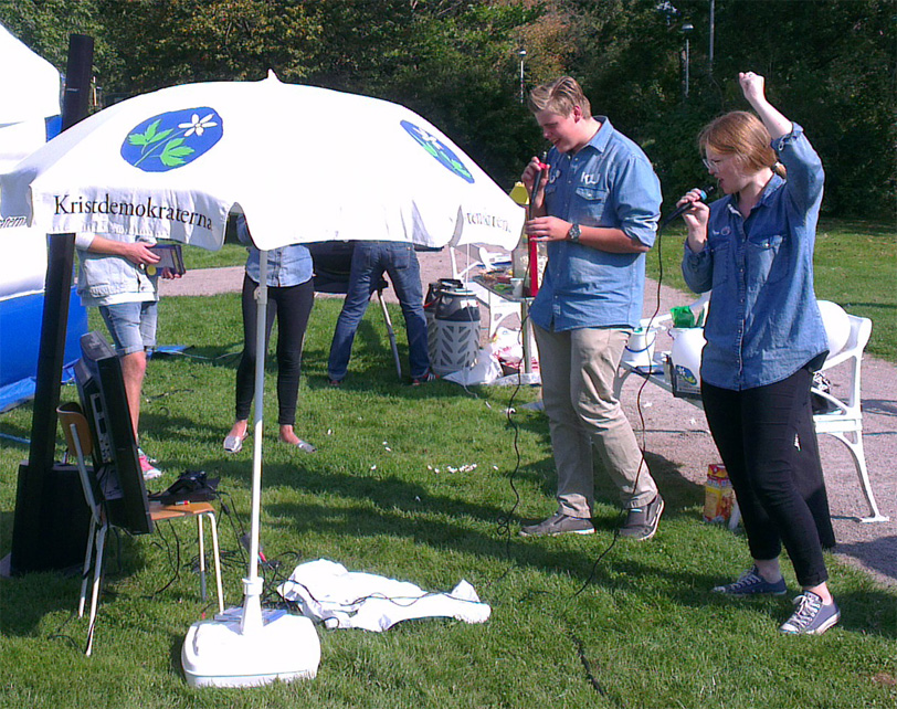 - Kristdemokraternas familjedag i Åbroparken innehöll hoppborg, grillning, SingStar, popcorn och gôtt häng. (Foto: Håkan Johansson)