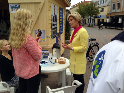 - Efter besöket på Galaxen åkte Maria Larsson till valstugan för att hjälpa till. (Foto: Arnold Carlzon)