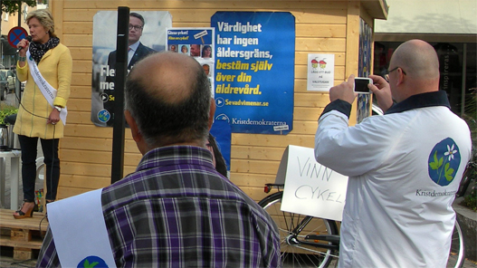 Sista dagen i valrörelsen var det valfinal vid vår valstuga på Flanaden. Barn- och äldreminister Maria Larsson från Gnosjö var där och Camilla Rinaldo Miller och Håkan Johansson stod för musiken. Det var många som kom till valstugan för att få information inför valet i sista stund.