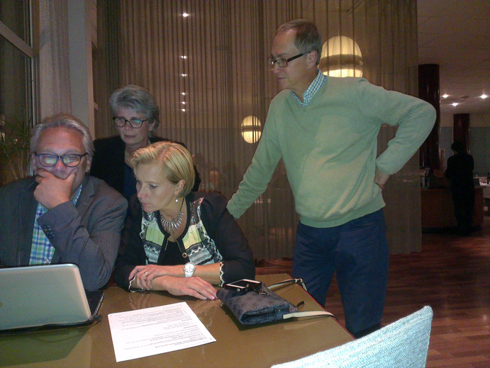 - Arnold Carlzon, Monica Johnsson, Camilla Rinaldo Miller och Thomas Johnsson fördjupar sig i valstatistiken som växer fram. (Foto: Håkan Johansson)