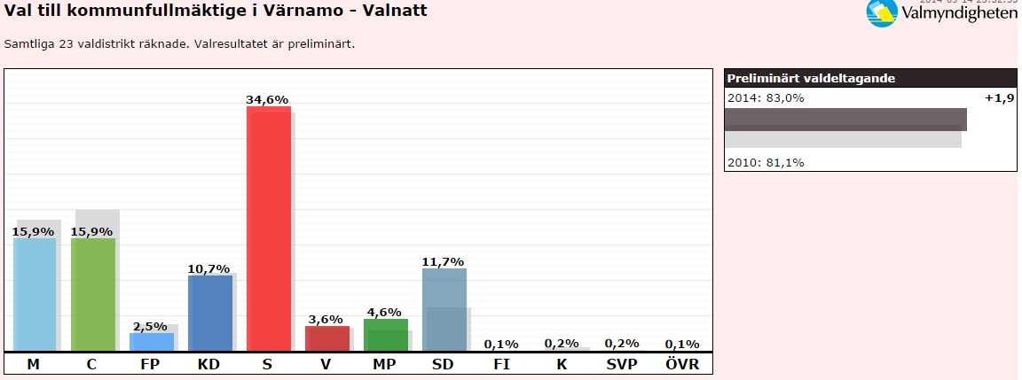 - Valnattsresultatet i Värnamo kommun.