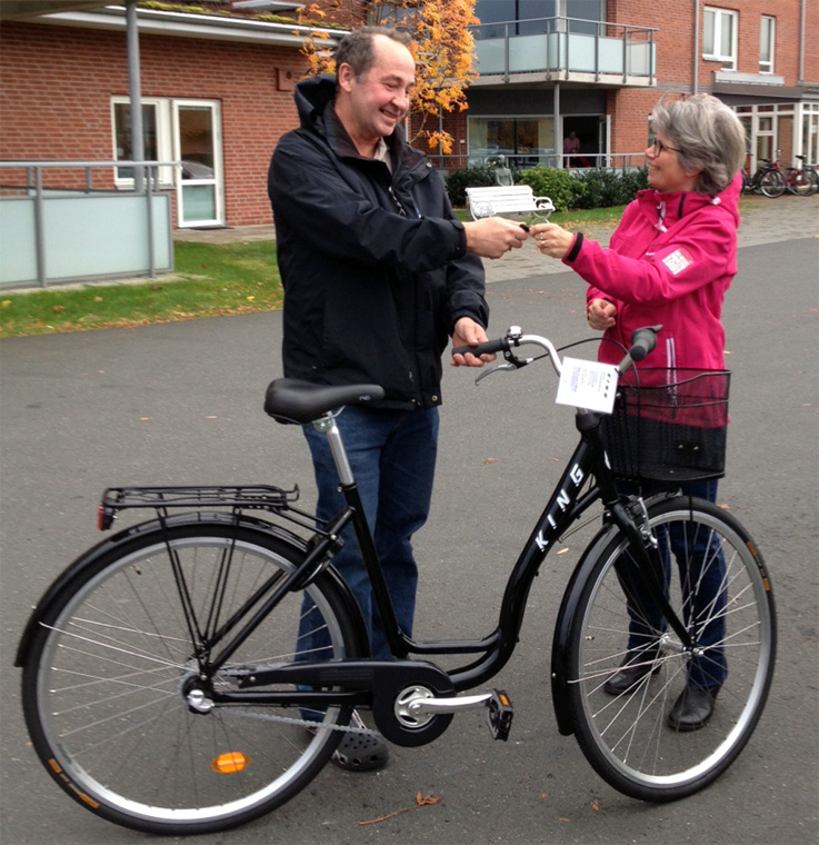– Cykeln ska min fru få i försenad födelsedagspresent, förklarade Morgan Anderberg från Rydaholm när han tog emot cykel och cykelnyckel från Kristdemokraternas Camilla Rinaldo Miller och Monica Johnsson vid en enkel prisutdelning på Vråen i Värnamo.