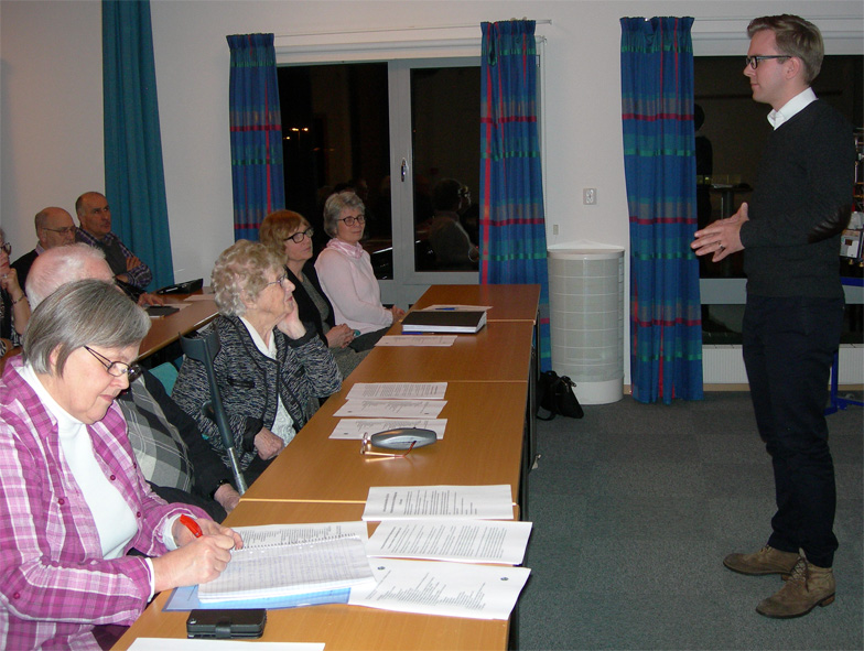 – Värnamo Energi levererar 100 % förnybar energi, berättade Niclas Lundin för det trettiotal intresserade kristdemokrater som samlats till årsmöte på Värnamo Energi. Vi har exempelvis egen vindkraftsproduktion. Den största utmaningen är annars att nå 90 % av kommunens fastigheter med bredband innan år 2020 – det är ytterligare 2700 fastigheter kvar.