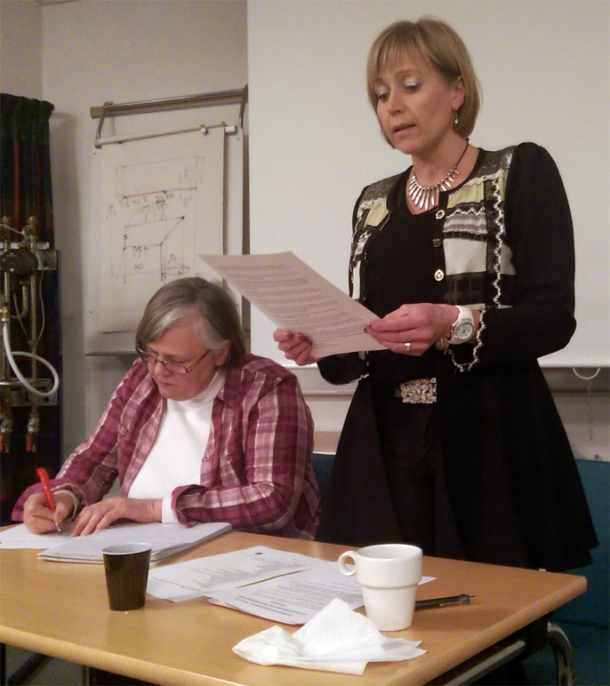 - Verksamhetsberättelse! Finns det ett härligare ord? Värnamos kristdemokrater kan se tillbaka på ett händelserikt och intensivt supervalår. Lena Freij och Camilla Rinaldo Miller var årsmötetspresidium. (Foto: Håkan Johansson)