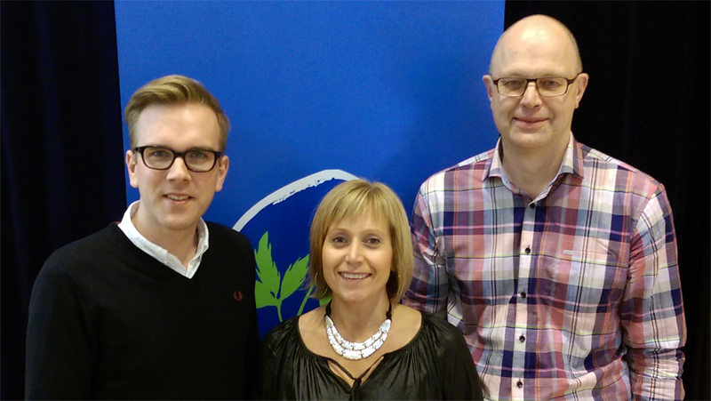 - Camilla Rinaldo Miller, Bredaryd, nyvald 1 vice ordförande i jönköpingsdistriktet tillsammans med ordförande Andreas Carlson, Mullsjö, och 2 vice ordförande Stefan Gustafsson, Sävsjö. (Foto: Håkan Johansson)