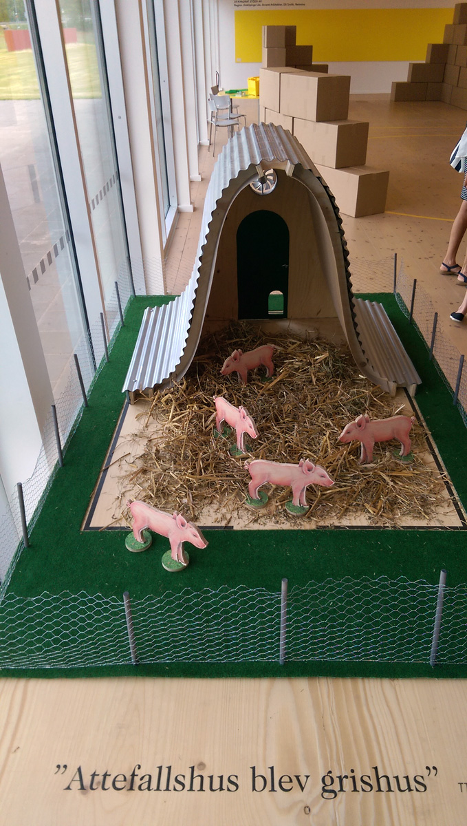 Utställningens namn är 25 KVADRAT: 25 arkitekter tolkar Attefall. Den är fylld av ögonfröjd och kan säkert ge inspiration till alla som är intresserade av byggande. Här finns allt från skidbackar till svinstior, från staket till skepp. Åk gärna dit och titta!