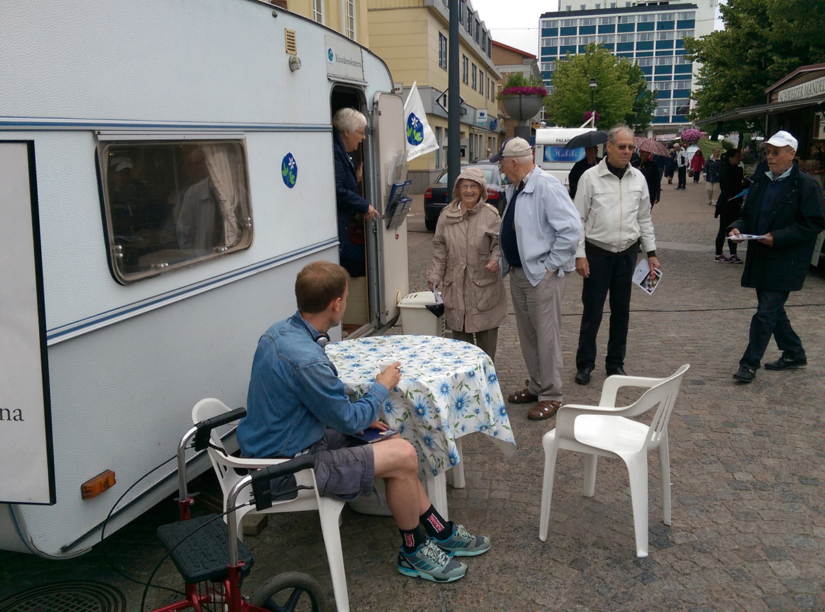 Slåttalördag är en traditionell marknadsdag i Värnamo. Då tog Kristdemokraternas seniorförbund hit sin våffelvagn från Habo, för vad passar väl bättre än våfflor på en marknad?! Trots regn och rusk så var det en hel del marknadsbesökare som passade på att ta emot ett våffelhjärta och fråga om kristdemokratisk seniorpolitik.