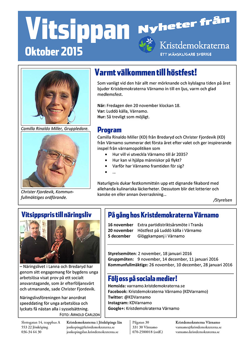 Medlemstidningen Vitsippan kommer ut med ett nytt nummer! Det innehåller rapport från Rikstinget i Västerås, inbjudan till partiavdelningens höstfest och mycket mer. Snart kommer det i din brevlåda och redan nu kan du läsa det på webben: