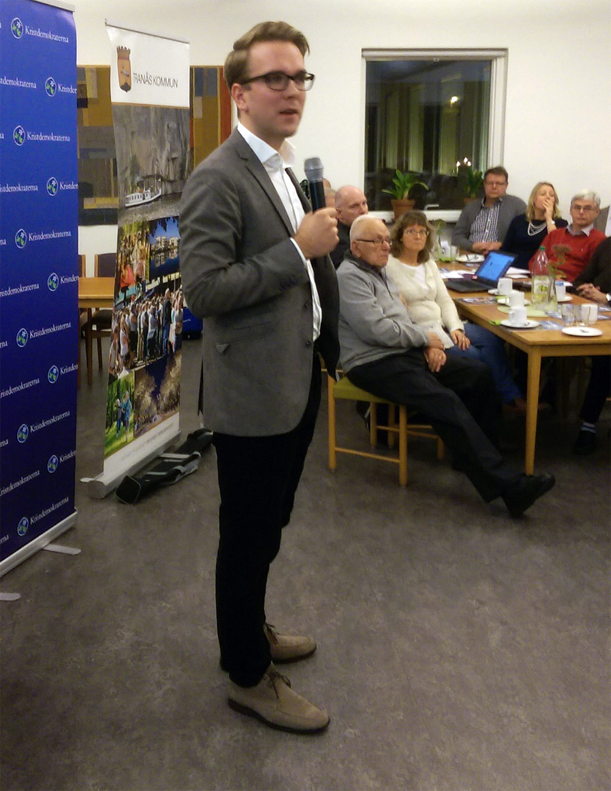 Mötet startade med att Anne-Christine Backlund, ordförande för Kristdemokraterna i Tranås, hälsade välkomna och berättade om kommunen. Därefter var det dags för partidistriktsordföranden och riksdagsledamoten Andreas Carlson från Mullsjö. Han gav en inblick från riksdagsarbetet och fördjupade sig bland annat i integrations- och flyktingfrågor, där han menar att Kristdemokraterna måste fortsätta följa sin linje med både hjärta och hjärna i flyktingpolitiken.