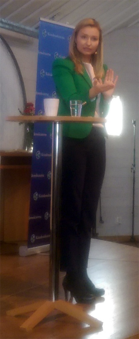 - Under förmiddagen inspirerade Stina Sinclair länets partiavdelningar att bli mer levande och aktiva. (Foto: Håkan Johansson)