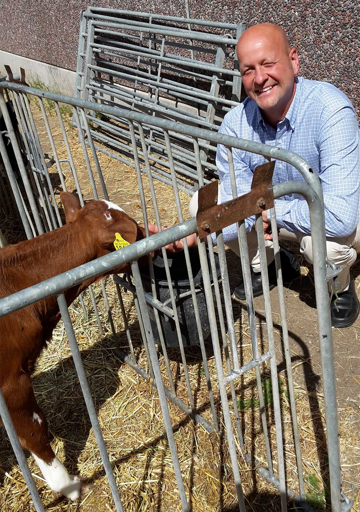 – Nu trivs jag, log Magnus Oscarsson, som själv varit bonde, när han matade en pigg kalv.