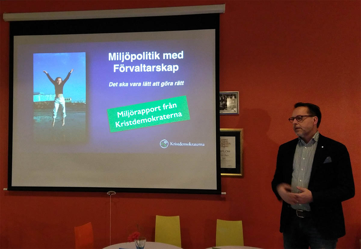 - Det ska vara lätt att göra rätt. Lars Thunberg presenterar Kristdemokraternas miljöpolitiska rapport ”Miljöpolitik med förvaltarskap” på årsmötet i Kafferepet. (Foto: Håkan Johansson)