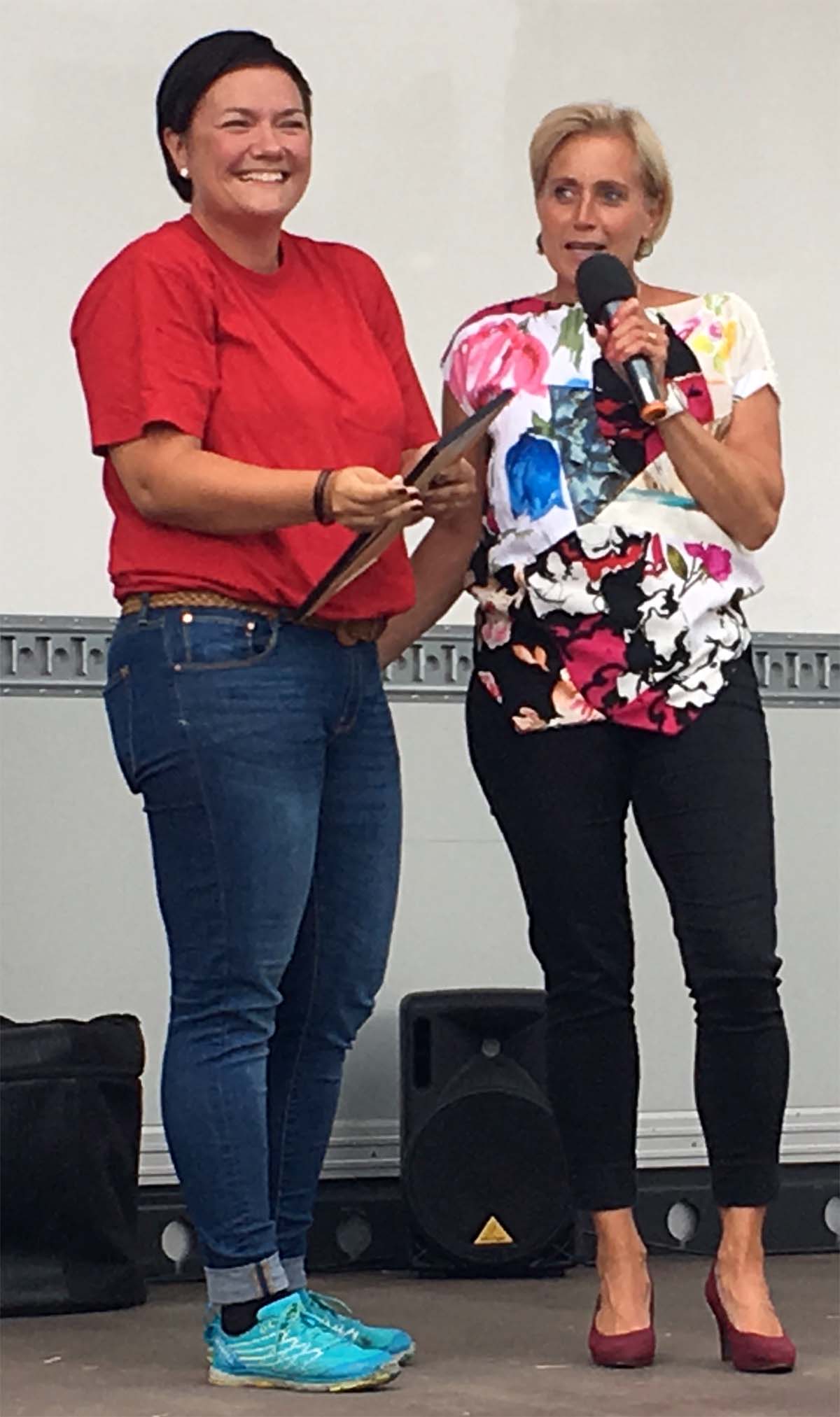- När överraskningen hade släppt passade Camilla Rinaldo Miller på att tacka för utmärkesen Årets bredarydsbo. (Foto: Arnold Carlzon)