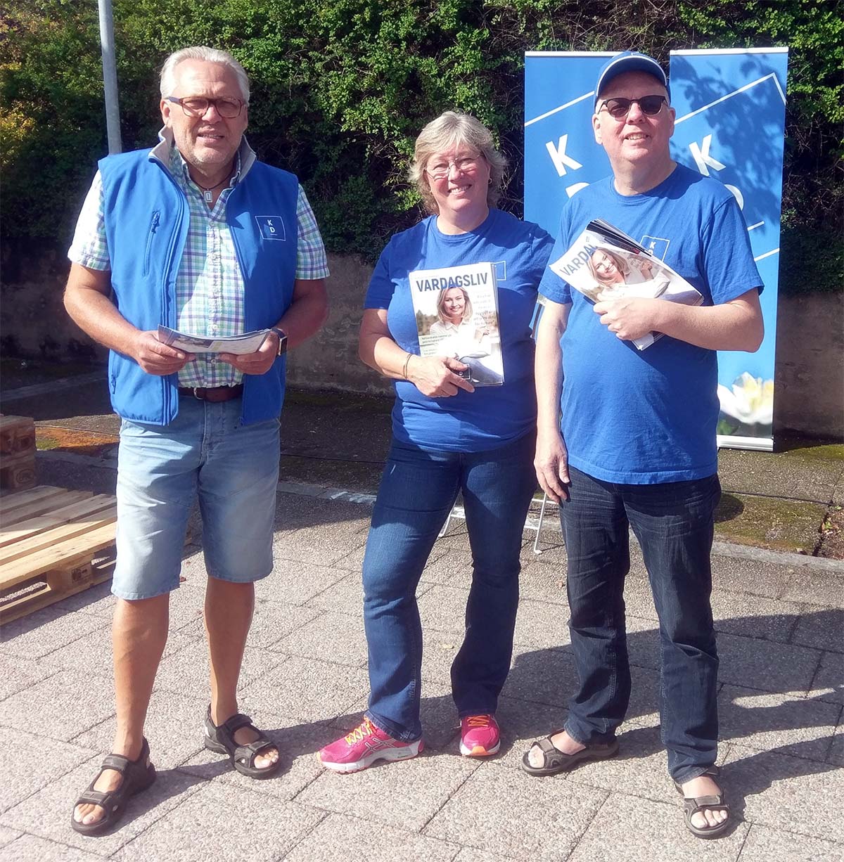 - Arnold Carlzon och Håkan Johansson fick hjälp av Maria Sandberg från Gnosjö med att dela ut kampanjtidningen Vardagsliv. (Foto: Dan Pettersson)