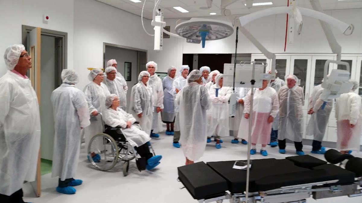 Under ledning av lokala samordnaren Anna Skoogh, som även är samordningsansvarig för den pågående ny- och ombyggnationen, fick deltagarna se och höra hur en modern operationssal fungerar i dag med den senaste tekniken. De imponerade deltagarna var tacksamma för möjligheten att tjuvkika på den nya operationsavdelningen som invigs den 30 augusti.