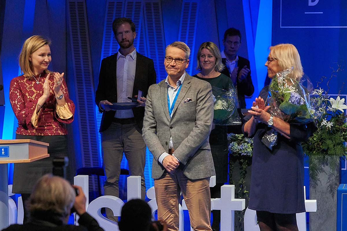 - Alf Svenssonplaketten är den finaste utmärkelse man kan få inom Kristdemokraterna. Applåderna var långa och varma när Inger Davidsson och Göran Hägglund fick ta emot den av partiledaren Ebba Busch Thor. (Foto: Stefan Gustafsson)