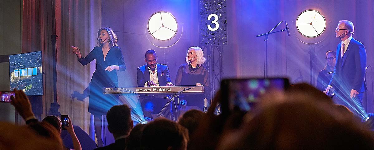 - Rikstingsfestens huvudnummer var Så ska det låta och är det någonstans man kan hitta artister till ett spontant Så ska det låta så är det väl på rikstingsfest med Kristdemokraterna! Ebba Busch Thor, Acko Ankarberg Johansson, Jakob Forssmed och Roland Utbult gjorde bra ifrån sig. (Foto: Stefan Gustafsson)