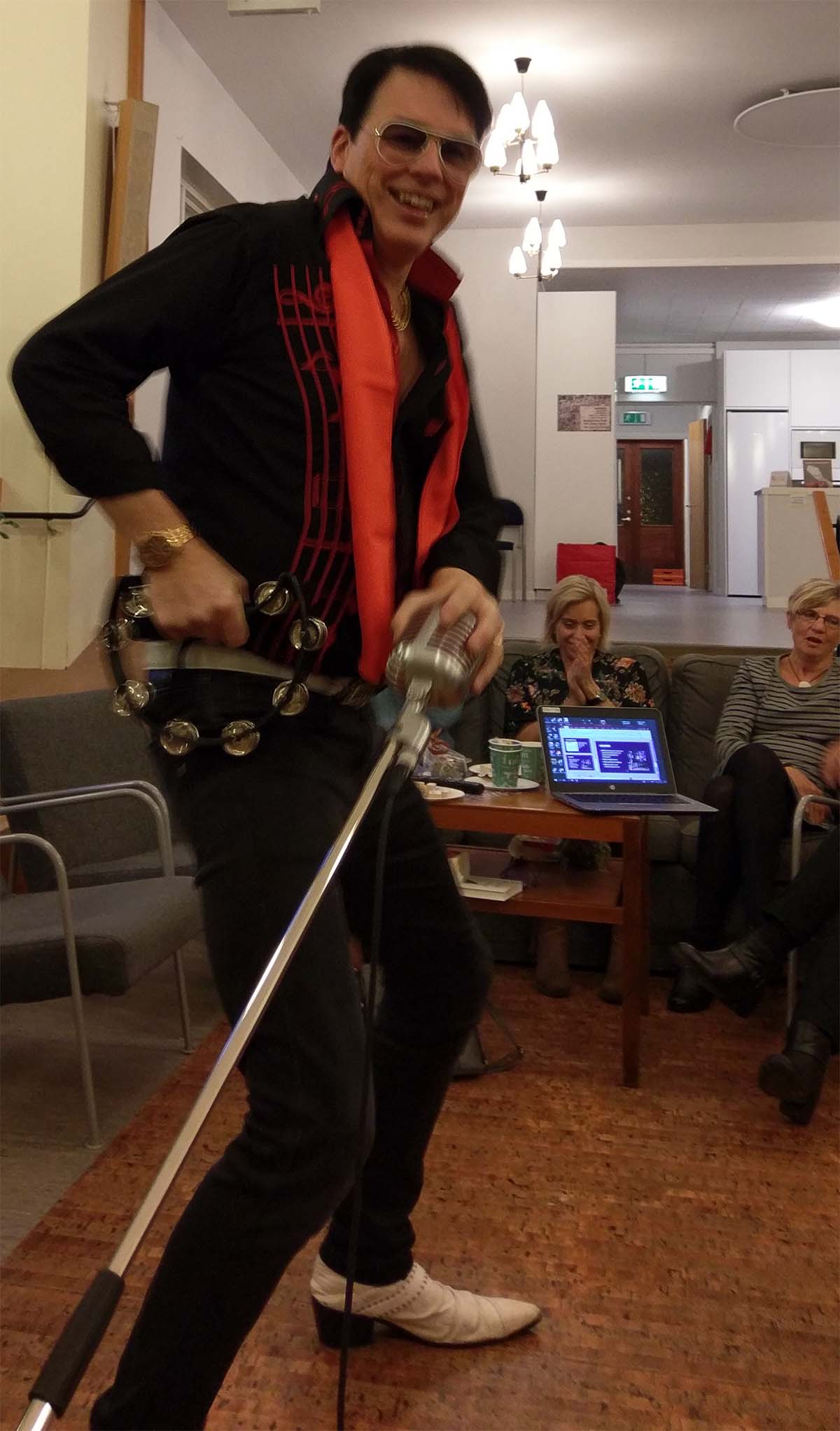 - Ehrling Lundberg, Malmbäcks svar på Elvis, stod för underhållningen på Kristdemokraternas höstfest på Frälsis. (Foto: Håkan Johansson)